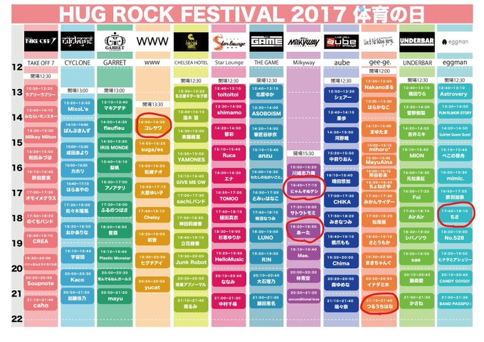 今日はこれだよ❗ 『HUG ROCK FESTIVAL 2017 体育の日』 渋谷宇田川町12会場 お気に入りには〇を付けました(‘ω’)ノ 他はあまり興味がないか全然知らない人ばかりです。。 おすすめある方いたら教えてください! ひとまずランチへランチ☀🍴 #ハグロック pic.twitter.com/FuBUctswvC