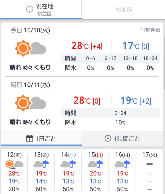 明日は更に4℃上がって28℃😲 火~木曜日まで28℃続くってさ ┐(´~`;)┌ 朝晩は冷えるし 着るものに困るわぁ ┐(´~`;)┌ pic.twitter.com/6Gb54SqCkc