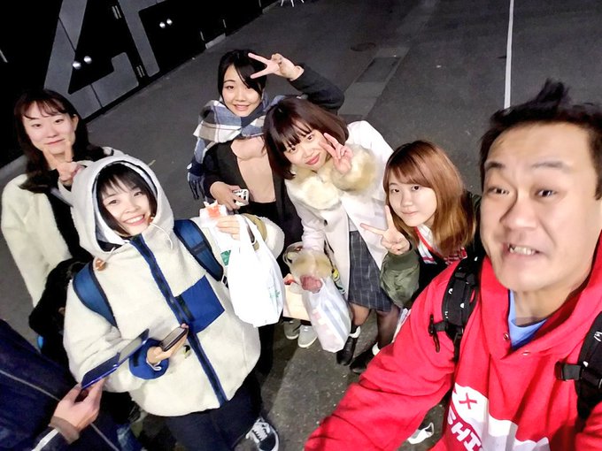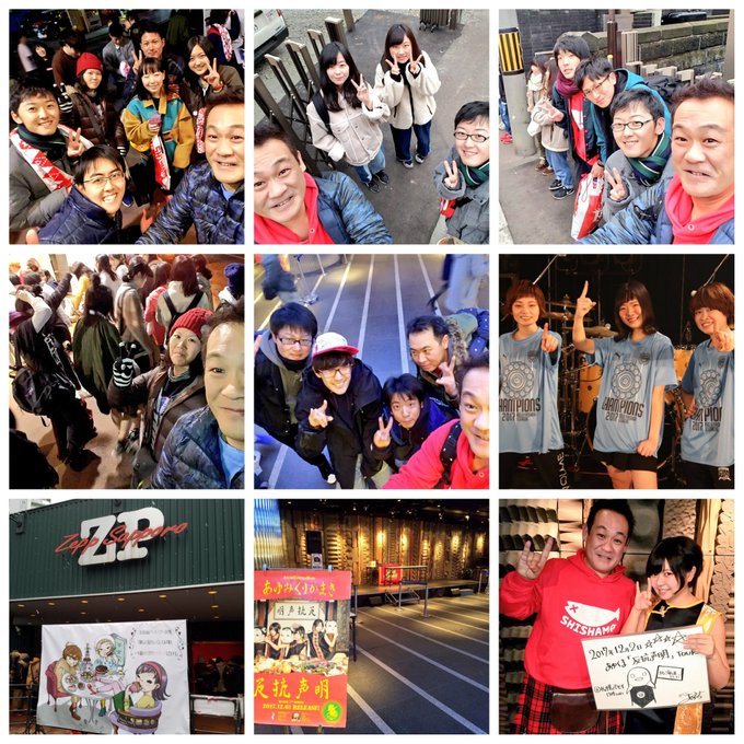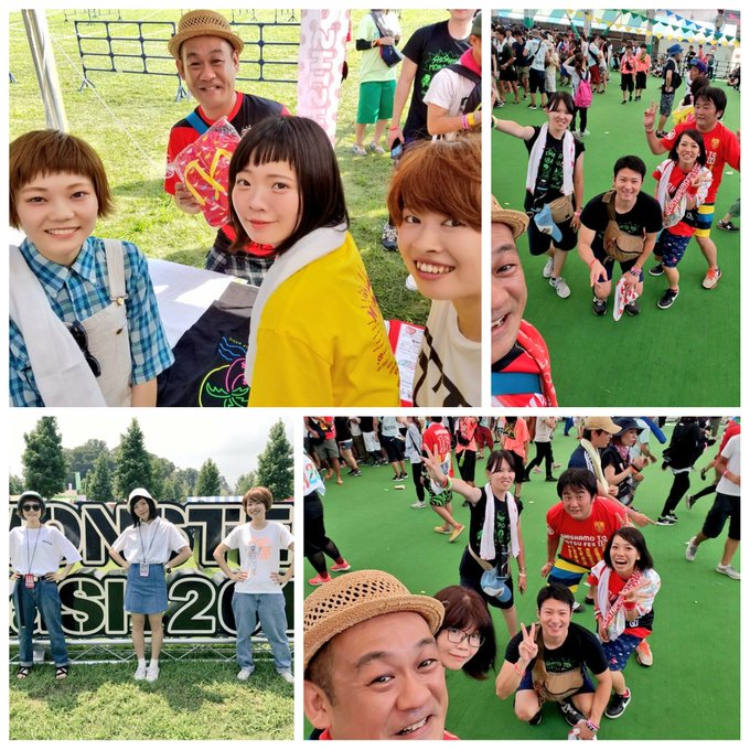 コレサワ→mihoro*→川嶋志乃舞→にゃんぞぬデシ→あーた→ヒグチアイ→つるうちはな ヒグチアイさん終了☺ と見せかけて実はヒグチケイさんの追っかけ参戦だぁー ( 〃▽〃) 追っかけの面々と。。 #ハグロック pic.twitter.com/MrNpAmdZJ1